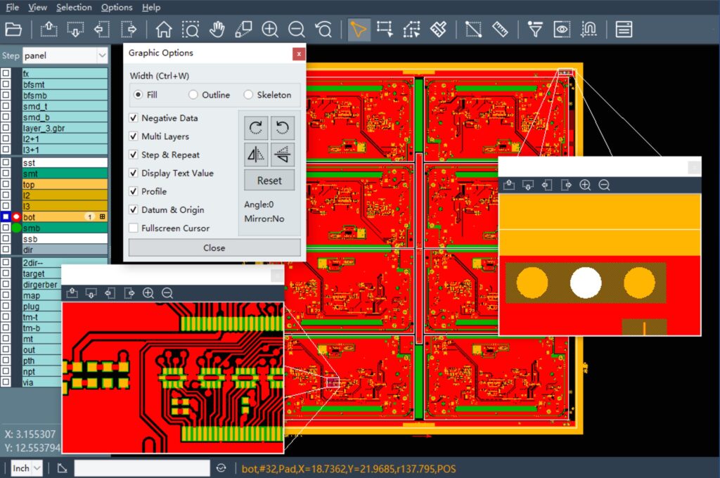 OpenCAM是由無錫東領智能科技股份有限公司開發(fā)的一款輕量級PCB CAM圖形查看器。基于C++開發(fā),具有超高的圖形顯示效率,完全支持ODB++8.1格式。